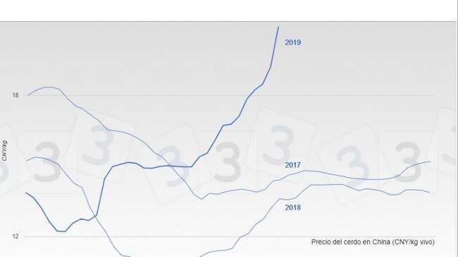 China has been buying great volumes of pork cuts in all Europe for a few weeks. The pig price in China has shown a spectacular rise.