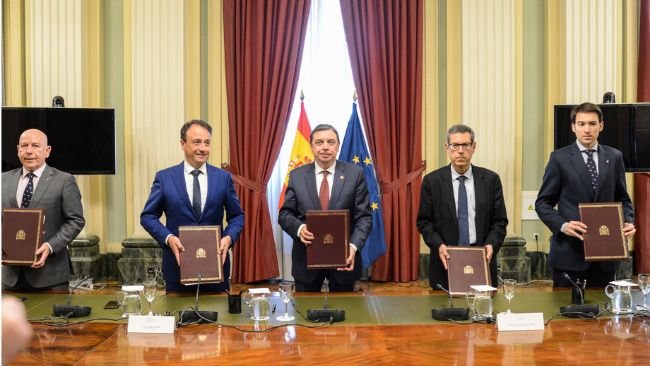 The Ministry of Agriculture signs an agreement with the interprofessional organizations Interovic, Interporc, and Provacuno to promote the excellence and diversity of the Spanish meat sector in the international market.