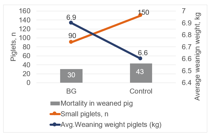Figure 2 Piglet performance (Mortality, number of small piglets and average weaning weight)