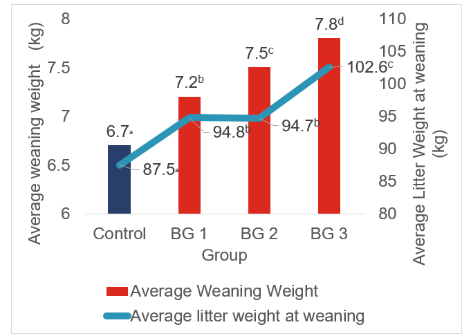 - A significant increase on weaning weight and litter weight across all BG groups was noticed as seen in figure 3