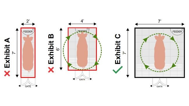 Proposition 12 requires that livestock animals in confinement in California be housed under specific standards in regards to freedom of movement and minimum floor space. It also bans the sale of uncooked pork in California that comes from animals (or the direct offspring of animals) kept in conditions that do not comply with the standards, regardless of the state in which the animals are born or raised.