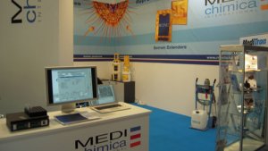Simulator that calculates the amount of drug to add to the water when using a flow dispenser.