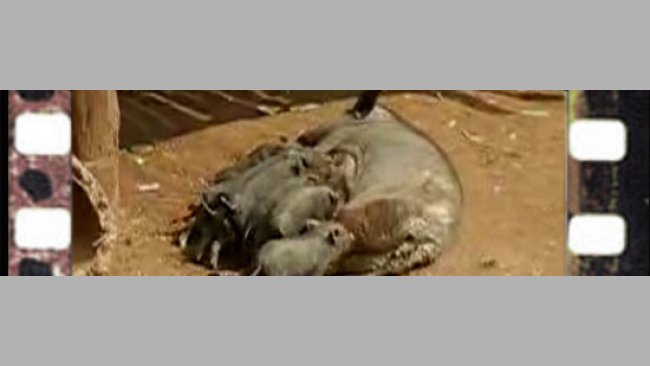 A litter of piglets in Thailand. One piglet struggles to get a teat.