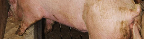 Drastic rationing in the fattening unit could become necessary for various reasons: for the economic penalties for excessively fatty carcasses, or when, in Italy, pigs for DOP hams reached 160 kg before they were 9 months old (minimum age for sacrifice). Feed restriction increases competition in the corral and the voracity of the dominant leaders, a situation in which the feeder space becomes important. With more animals there is more competition and anxiety which increases the appetite of the dominant pigs. They place themselves in front of the feed tube and, with a nose or a leg, try to slow down the solid component as it comes out of the feeder being able to take in a more concentrated puree (on these occasions an increase in the dilution would be useful). To sum up, the greedy pigs are the ideal candidates for the Hemorrhagic bowel syndrome. The intake of large volumes implies a reduction in digestion, a condition which, together with the difficulties in the stomach to acidify the contents, causes its immediate fermentation and the corresponding production of gas. The gas expands the stomach and the intestine can become partially twisted: one more obstacle for the digestion and an additional stimulus for microbial fermentation. The pressure of the gas can harm the intestinal vessel and cause an intestinal haemorrhage, or pressure on the lungs, provoking respiratory complications, or compress other vessels in the abdominal cavity the occlusion of which could cause cardiac arrest. This situation begins with bad behaviour and also an increase in competition.Conclusions