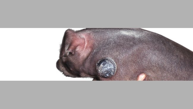 In the second study, data were collated for sixteen months from January 2010 to April 2011 and pigs were inspected regularly in the farrowing house up to an average weaning age of 27.9 days. The incidence of melanomas was 1.04%. In this study, pigs post-weaning were also regularly inspected throughout the grower/finisher period and an additional 1.56% of pigs were identified with lesions. Currently DNA samples are being taken from all affected pigs and litter-mates for further evaluation.