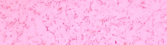Fig. 1 Gram stain of Haemophilus parasuis. Short gram negative bacilli are observed and others that are longer (pleomorphic)