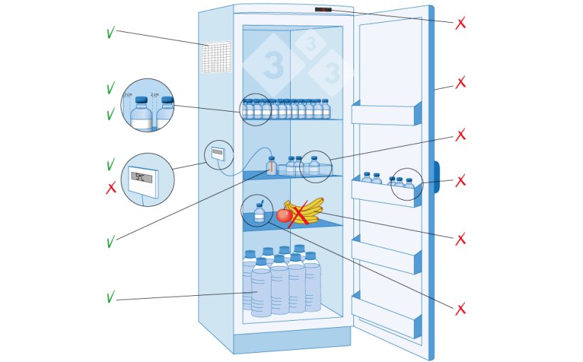 - It is recommended to place the vaccines in such a way that we can see their expiration date quickly so that we can always use the oldest ones first. The new ones should be placed at the back and the oldest ones at the front.