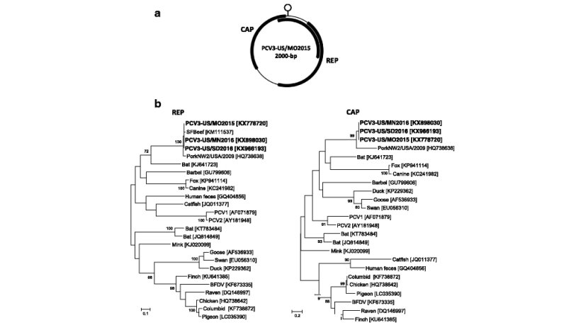 In relation to PCV-3, most of the cases described are referred to as "PCV3-associated disease", that should be differentiated from " PCV-3 as a causative agent". The fact that a microorganism is detected in the context of a clinical problem does not necessarily indicate that it is causing the problem. Studies have been conducted where the presence of PCV-3 was assessed in cases sent to the laboratory due to digestive and respiratory problems and also in healthy animals, and the frequency of PCV-3 was practically the same in all three situations. We cannot forget that this virus is practically ubiquitous.