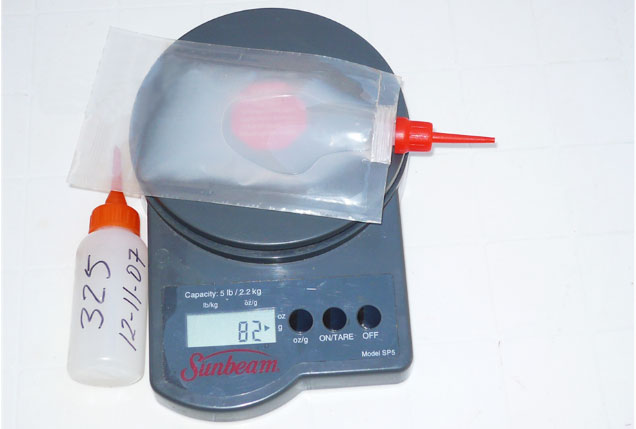 The calculation considering the new 80-ml container was corrected, so for 20 doses the total volume needed was 1,600 ml. The filling volume was set at 80 ml, and digital scales were introduced for weighing the doses as a control measure. The doses must weigh 80 g after subtracting the weight of the container (Photo 3).