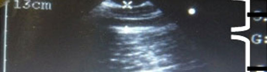 Figure 2. Ultrasound image of dorsal fat measure and the thickness of the loin of a sow.