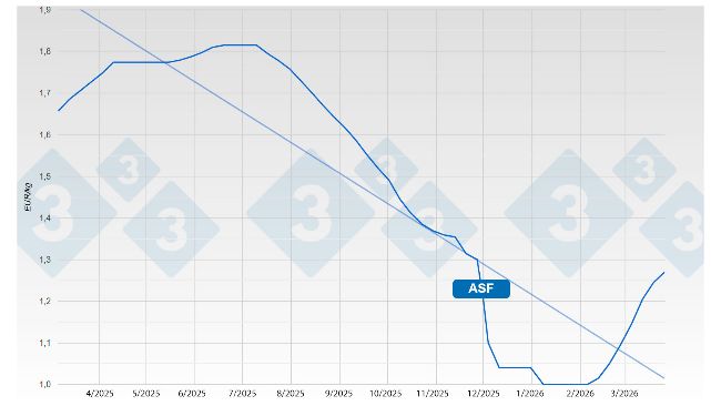 There is no doubt that ASF weighs heavily on pig prices. Prices will probably rise until they reach (and possibly exceed) the cost price, but we should not expect any major joys in 2026.