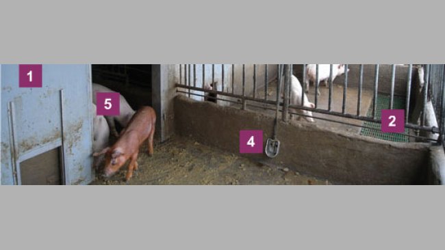 Design of facilities and equipment for pig farms: building design, climate control, feeding systems, etc.
