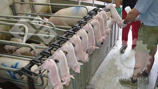 Some farmers have devised a device that allows them to tattoo the whole litter at the same time. We'll show you how it works.