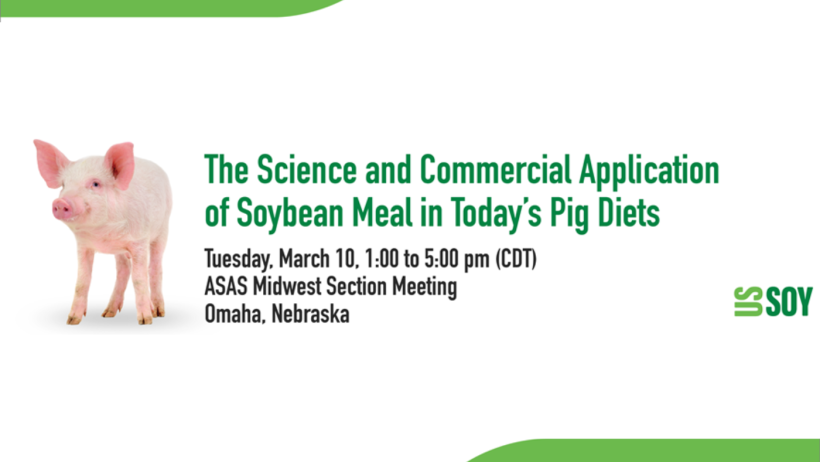 The symposium is scheduled for Tuesday, March 10, from 1:00 to 5:00 p.m., CDT, and will bring together leading researchers and industry experts to present the latest science on soybean meal while placing an emphasis on commercial application and economic decision-making in modern pork production systems.