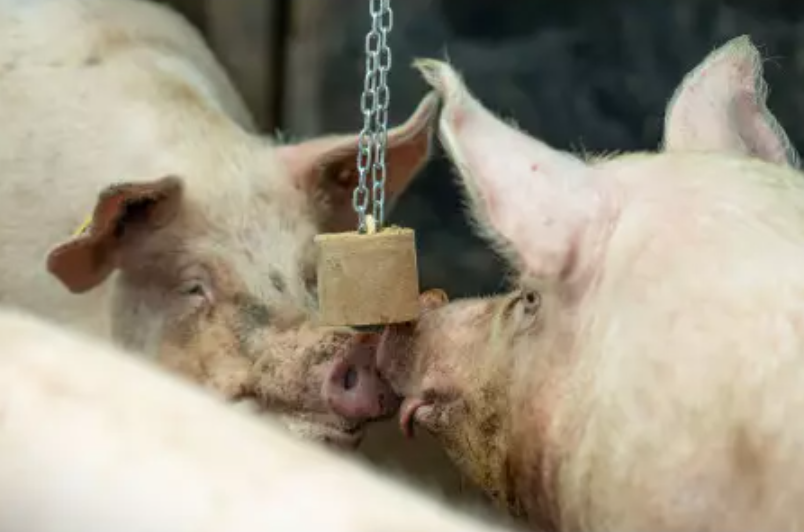 - Pomaga zapobiegać obgryzaniu ogonów przez ciężarne lochy.