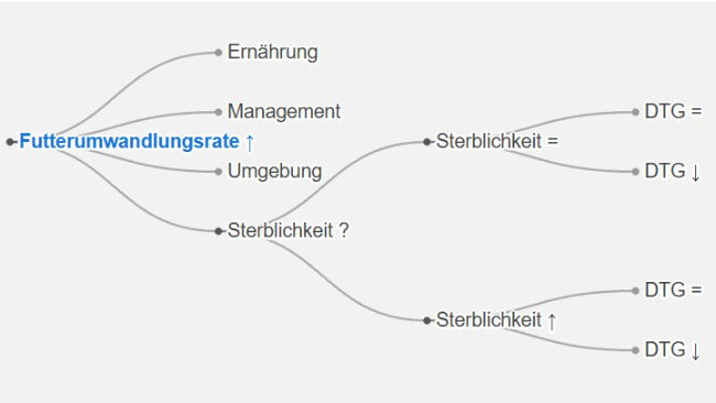 Use this tool to diagnose problems with the feed conversion ratio. Click on the flowchart or on the buttons within the text to navigate through the different parts of the tool.