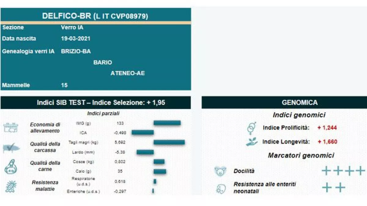 I dati produttivi di due sorelle e un fratello pieno di ogni verro candidato vengono raccolti nel centro genetico. I dati vengono analizzati con un Multiple Trait-BLUP Animal Model con diversi modelli per ciascun carattere. A seconda del carattere analizzato i modelli correggono gli indici per il settore di prova, la data di macellazione, il sesso, l'età alla fine della prova, il coefficiente di consanguineità, la nidiata.