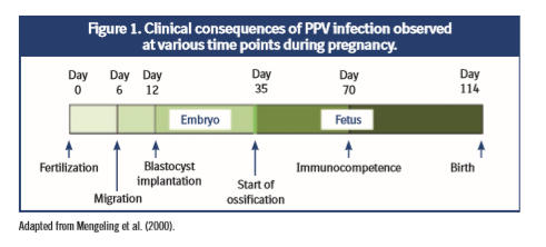 - Mengeling WL, Paul PS y Brown TT. 1980. Transplacental infection and embryonic death following maternal exposure to porcine parvovirus near the time of conception. Archives of Virology, 65:55-62.