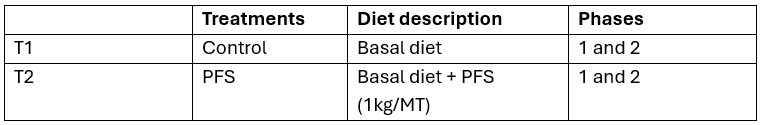 An important trial by Cargill in Spain (2022) demonstrated the significant benefits of using the PFS during the weaning period. A total of 276 weaned piglets of both sexes (Danbred sows X Pietrain male) with intact tails and weaned at 22 days were allocated to treatments according to gender, body weight and sow parity. The trial was conducted for 42 days. Pigs were assigned to two treatments (11 replicates for control treatment and 12 replicates for PFS treatment; 12 pigs/replicate – see Table 1). Two-phase diets (phase 1 for 18 days and phase 2 for 24 days) were offered in pellet form and ad libitum. Water was also available ad libitum. Basal diets (control) contained a blend of feed additives (PFS) aiming to promote piglet gut resilience and performance but did not have pharmacological levels of zinc oxide. Measurements taken included ADG, ADFI, FCR and faecal scores (1: firm and shaped; 2: soft and shaped; 3: loose; 4: watery).