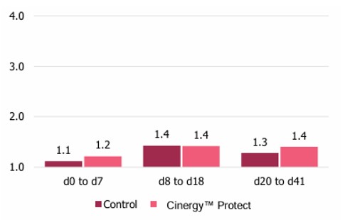Its efficacy has been demonstrated in numerous trials. In the study referenced in this article, supplementation with Cinergy Protect improved piglet growth performance during the first seven days post-weaning, with average average daily feed intake (ADFI) increasing by 7.8% and daily gain (ADG) increasing by 15.1% . These results indicate that Cinergy Protect has the potential to support growth performance during the critical post-weaning phase.