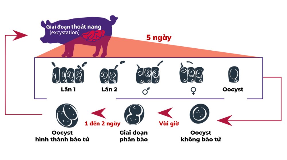 Vấn đề tiếp theo là tiêu chảy do cầu trùng (Cytoisospora suis), một trong những bệnh thường gặp nhất trên heo con theo mẹ. Heo con bị nhiễm do ăn phải nang trứng (oocyst) cầu trùng và xâm nhập vào niêm mạc ruột non. Cơ quan đích của cầu trùng là hồi tràng và không tràng. Mỗi nang trứng có khả năng phá hủy hàng ngàn, thậm chí hàng triệu tế bào biểu mô ruột non. Ảnh hưởng của bệnh sẽ tăng lên đáng kể nếu có thêm sự xâm nhập và nhiễm trùng các bệnh đường ruột khác (như Clostridium).