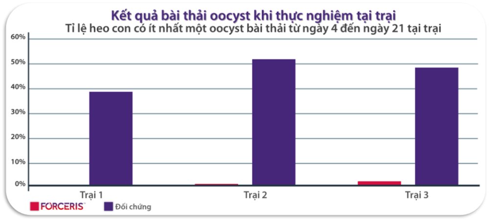 Một thực nghiệm tại trại heo có chẩn đoán dương tính với Cytoisospora suis cho thấy kết quả FORCERIS gần như ngăn ngừa hoàn toàn việc bài thải nang noãn cầu trùng (Lysanne Hiob, 2019).