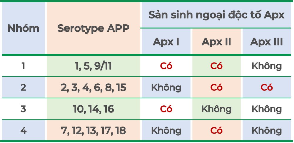 Tất cả các serotype đều sản sinh ApxIV – loại Apx không có tính độc lực và được ứng dụng trong xét nghiệm chẩn đoán. Kháng thể chống lại ApxIV do heo nhiễm A.p tự nhiên hoặc từ heo nái truyền cho heo con qua sữa đầu (khoảng 30% đàn nái nhiễm tự nhiên với A.p).