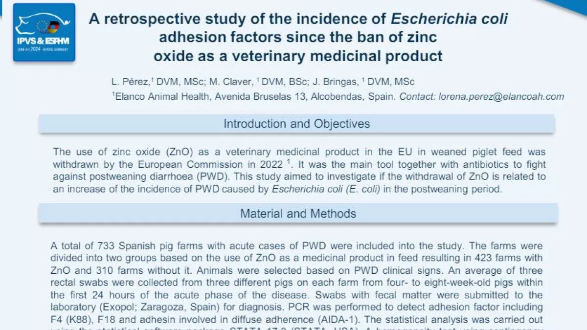 En conclusión, se necesitan otras herramientas para controlar la mayor incidencia de diarrea posdestete causada por E. coli, ya que el ZnO como medicamento no está permitido y se está limitando el uso de antibióticos.