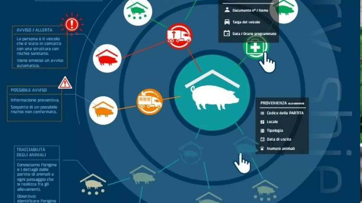 Lavoriamo anche in ambito d'allevamento con software di gestione per la biosicurezza, tracciando tutti i movimenti di persone e di mezzi che arrivano in azienda, oltre che fornire elementi importanti come le visite (chi, quando), incidenze di problematiche, determinazioni di zone "a rischio". Di grande aiuto per il controllo delle malattie come la peste suina africana (PSA), sindrome riproduttiva e respiratoria dei suini (PRRS) e disenteria suina epidemica (PED).