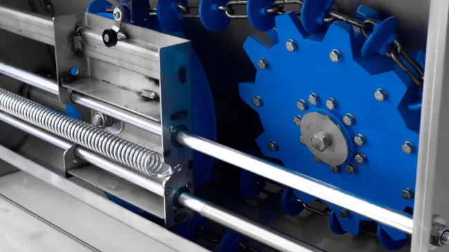 Menor desgaste: Rueda dentada de polipropileno que prolonga la vida útil del equipo.products
