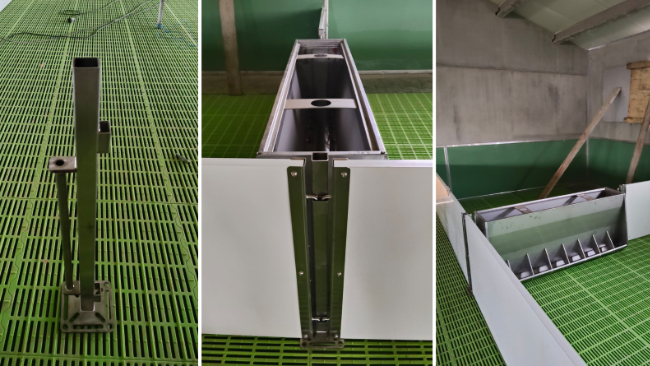 En esta instalación se han incorporado slats de plástico, viguetas de fibra de vidrio, separadores de PVC con fijaciones de acero inoxidable, además de bebederos, tolvas y nidos para mantener el calor de la placa de calefacción.