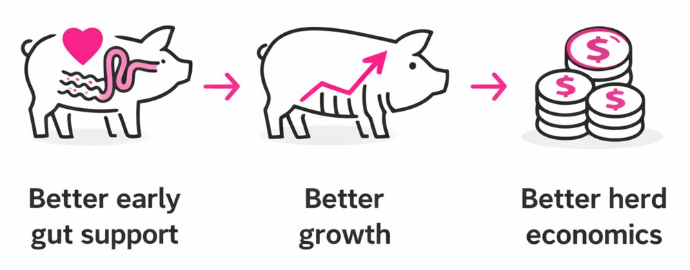 👉 Better early gut support → better growth → better herd economics