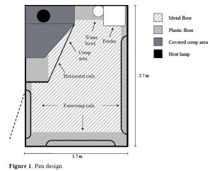 In 2003, the farmers designed pens for loose housing of farrowing and lactating sows with zero confinement. Their key innovation was placing the covered creep (piglet) area adjacent to the passageway, allowing caretakers to check piglets daily without entering the pen or disturbing the sow. This design improves piglet welfare and reduces stress for both animals and staff. The herd expanded from 550 to 1,200 sows by 2009, and the same pen design was retained due to its effectiveness. Most pens installed in Denmark now follow this principle.