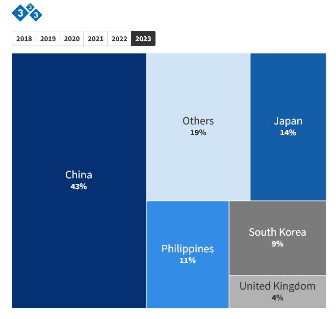 The Philippines, after two years ranking as the second destination, in 2023 returned to third position.