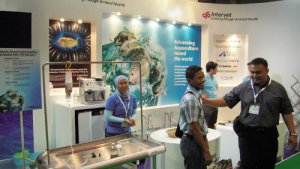 Simulator that calculates the amount of drug to add to the water when using a flow dispenser.