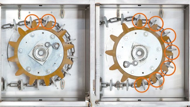 Dry feeding systems for feed supply must cover ever longer distances in the barn. This increases mechanical stress on conveyor chains and drive units.
