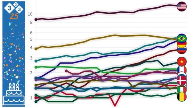 This year 333 celebrated its 25th anniversary. Let's look back and see how the industry has evolved in the top-producing countries over the past 25 years.