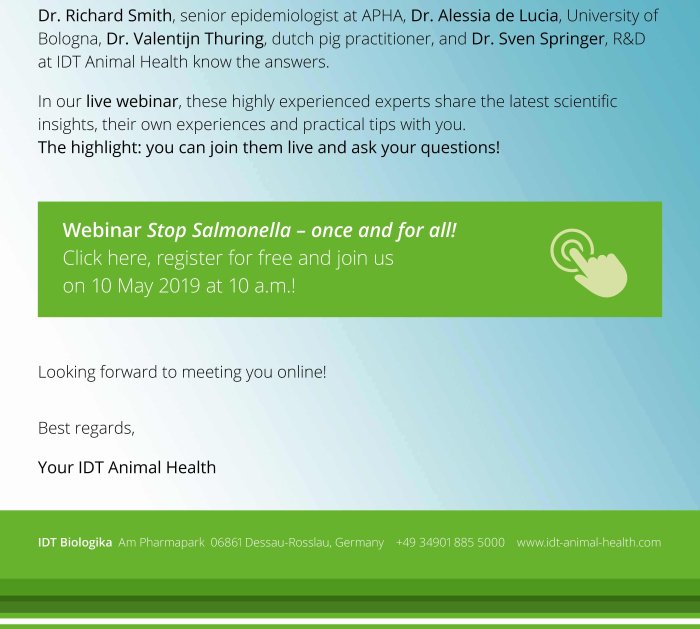 Your invitation to attend a Salmonella vaccine launch webinar - 10th May – one not to be missed!