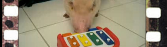 This is lovely Lola the potbelly pig. She has learned to play piano and horns...see her other video too!